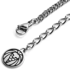 Silver-Tone & Black Stainless Steel Viking Anchor Wheat Chain Necklace