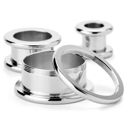 This screw-fit flesh tunnel is designed for easy insertion in your ear and is crafted from surgical steel. Features a brilliant polish that takes the silver-tone to a mirror-like finish.