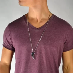 The perfect necklace length is subjective. The sketch is of a 6’2″, medium-build model with a 14 1/2” (37 cm) neck. For most men, a 19 3/4” (50 cm) necklace is standard. But men aren’t ‘standard’.