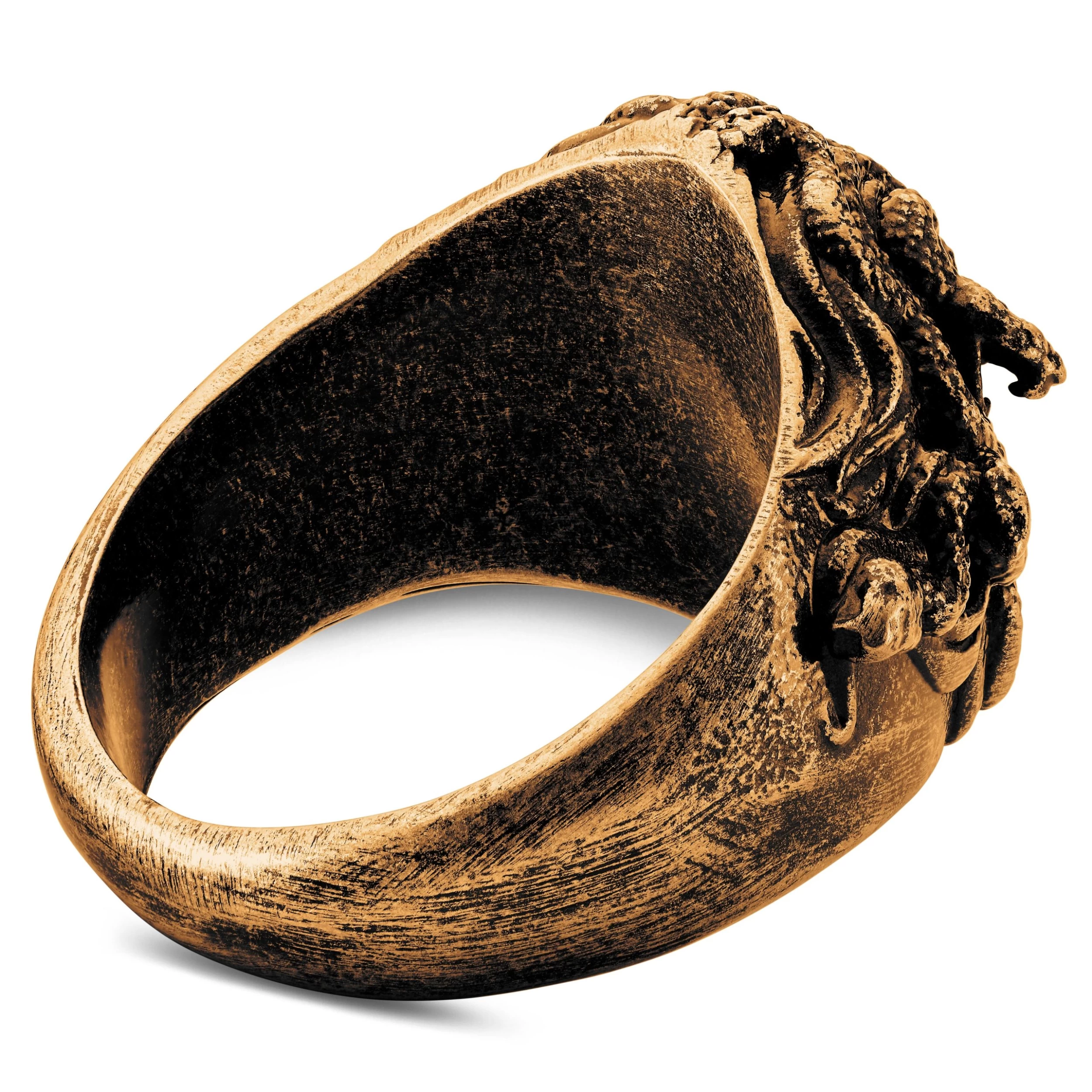 Vintage Gold-Tone & Black Medusa Signet Ring