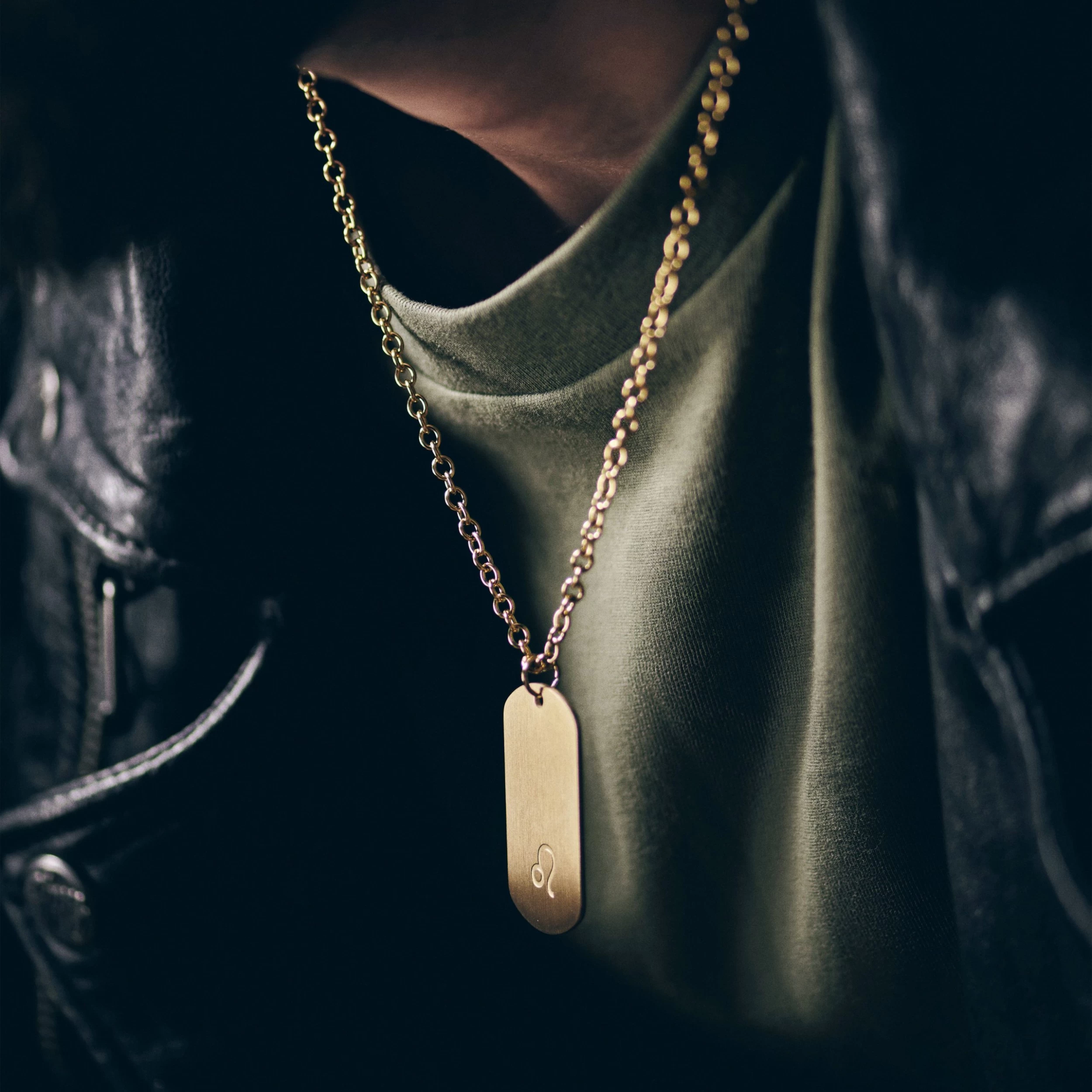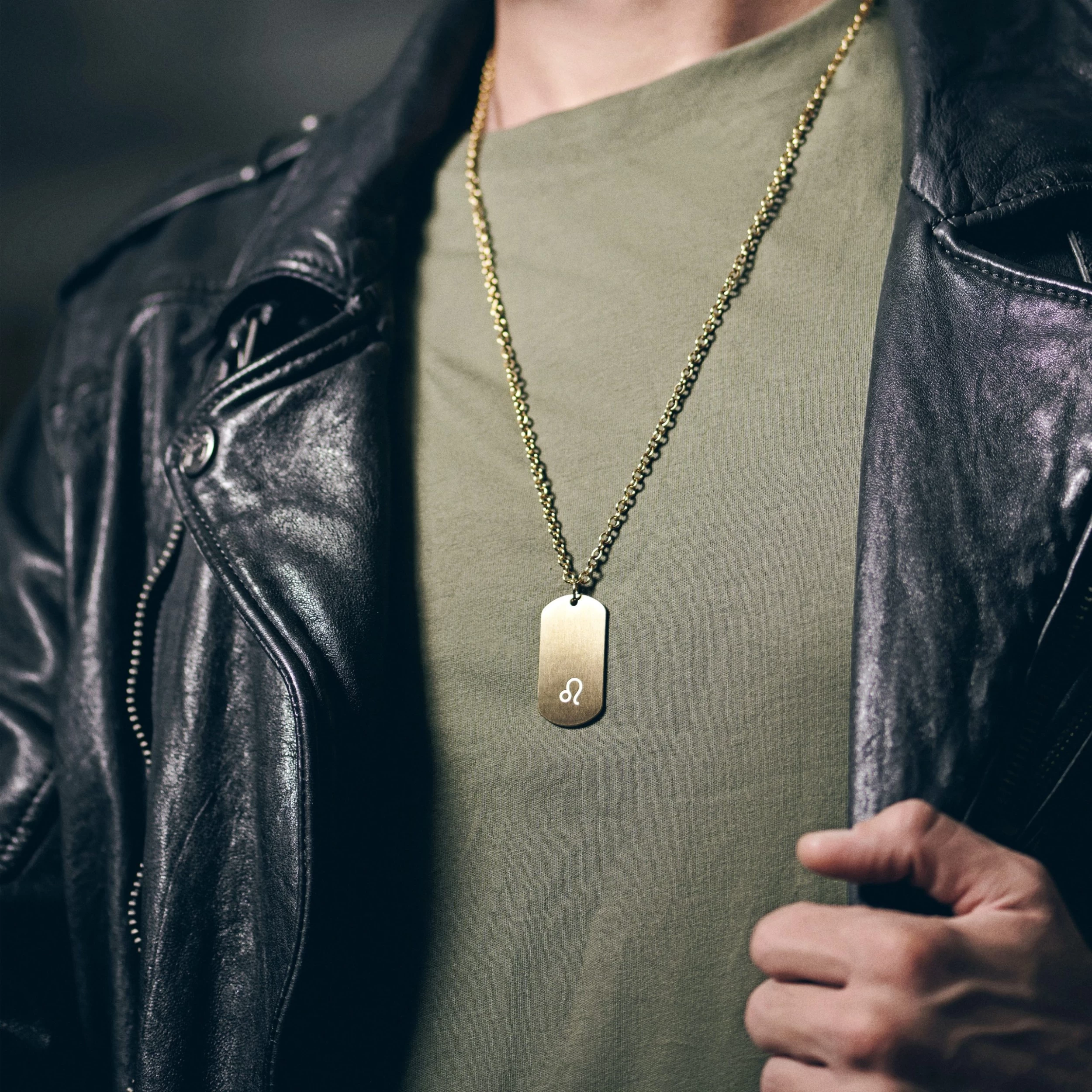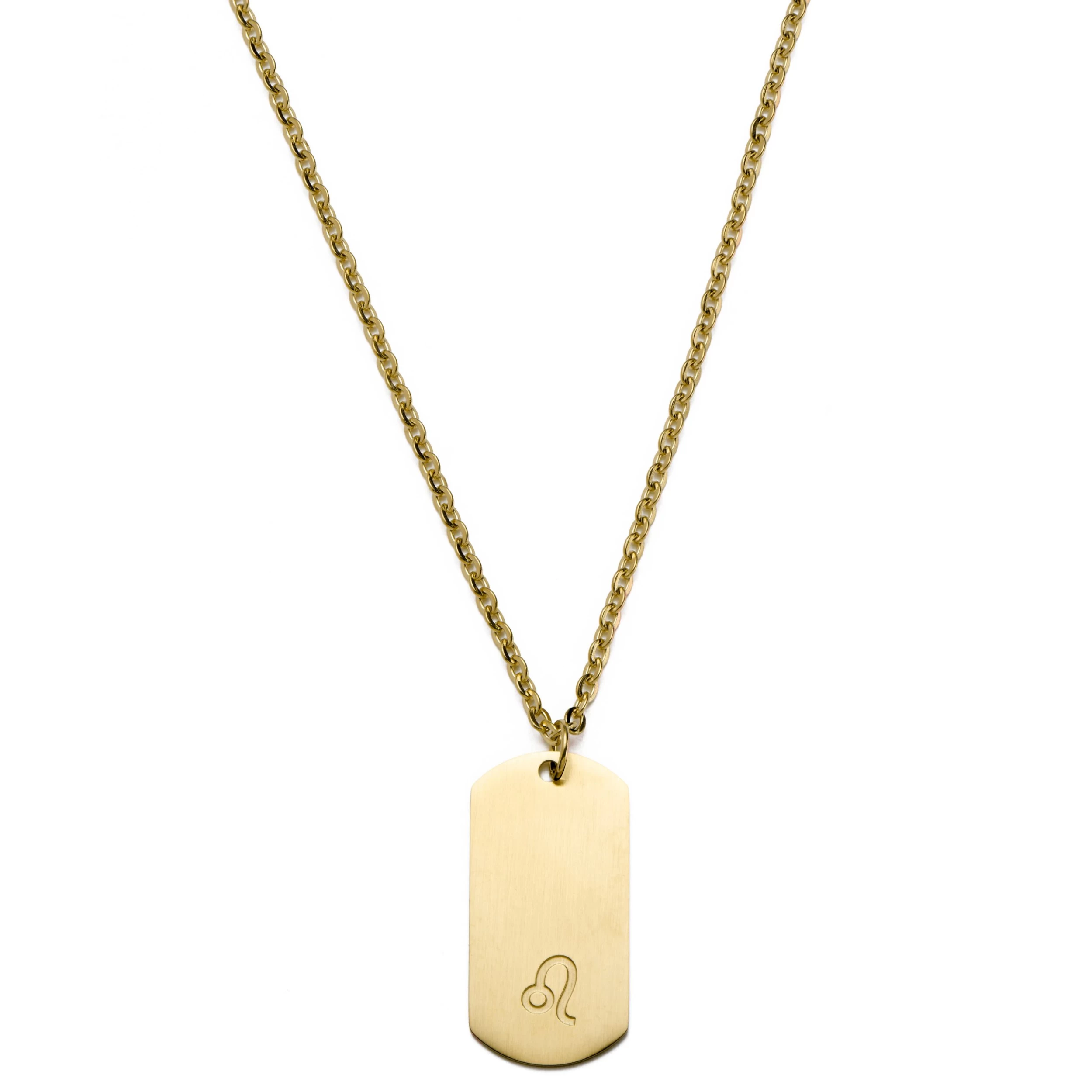 Zodiac | Gold-Tone Leo Star Sign Dog Tag Cable Chain Necklace