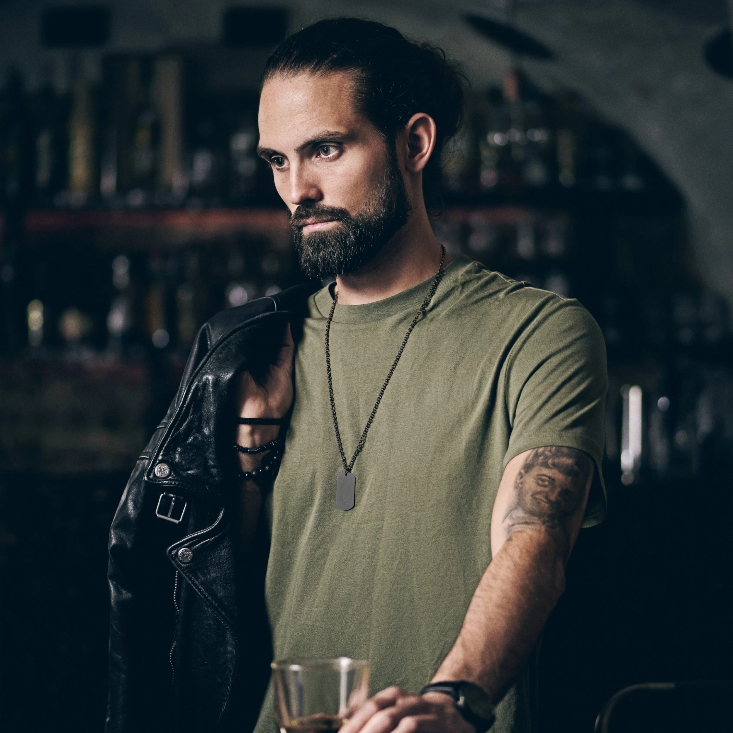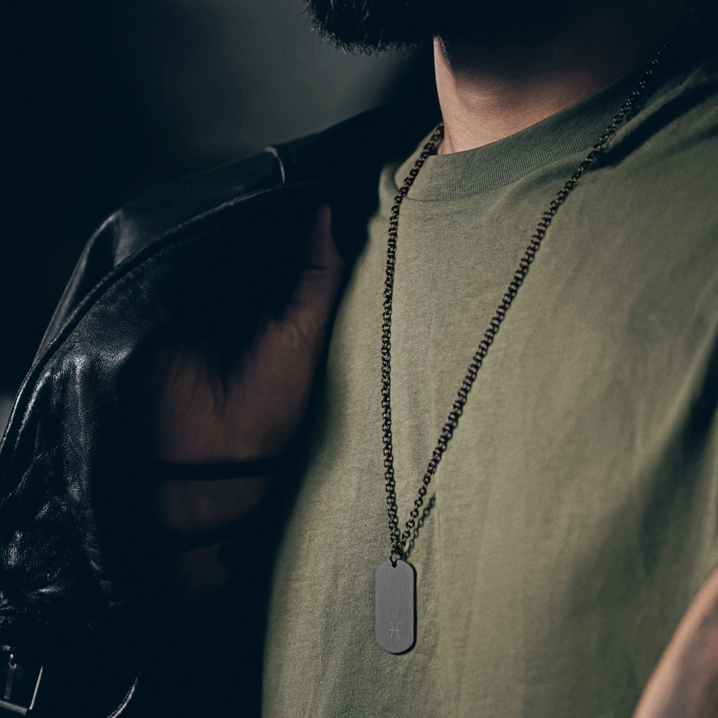 Zodiac | Gunmetal Stainless Steel Pisces Star Sign Dog Tag Cable Chain Necklace