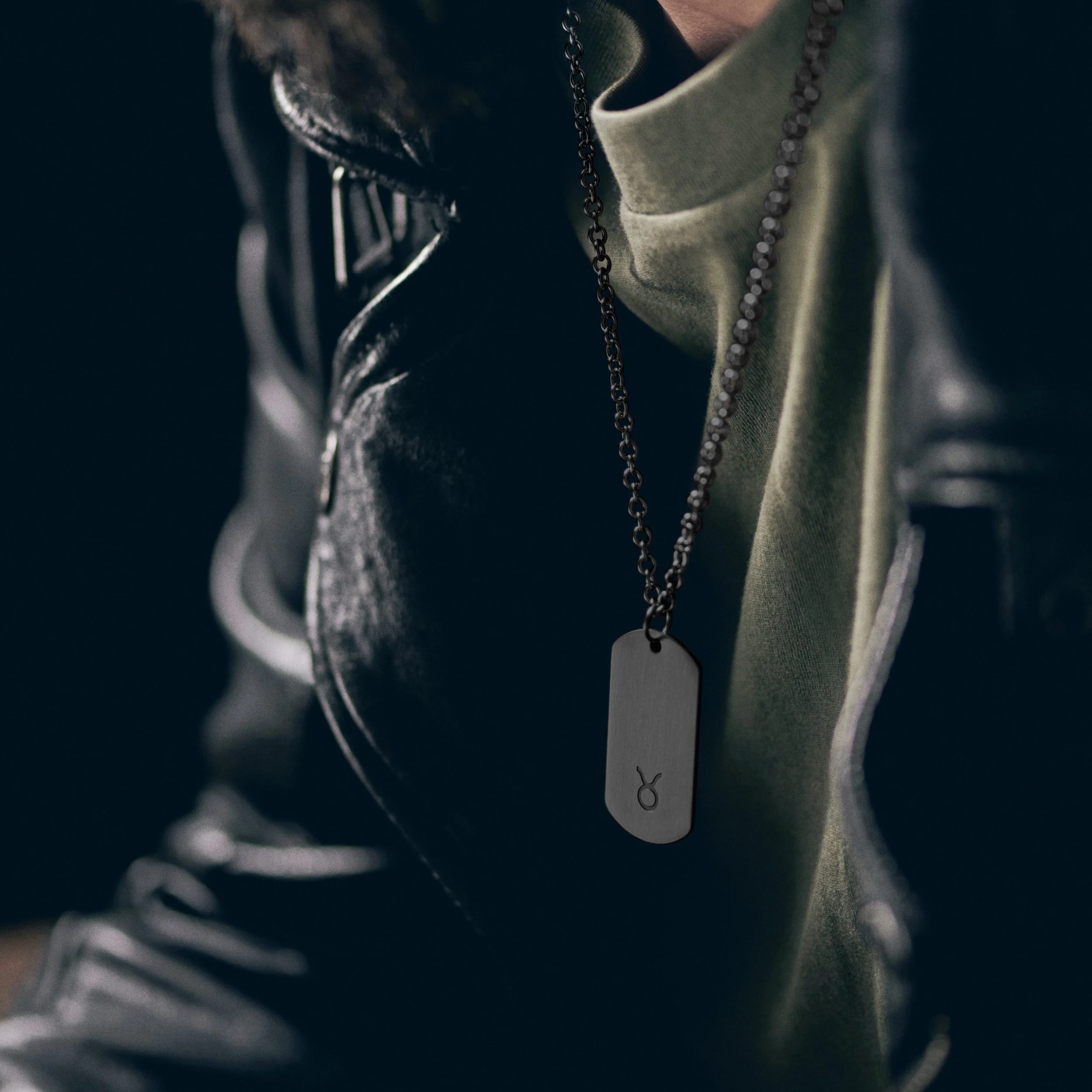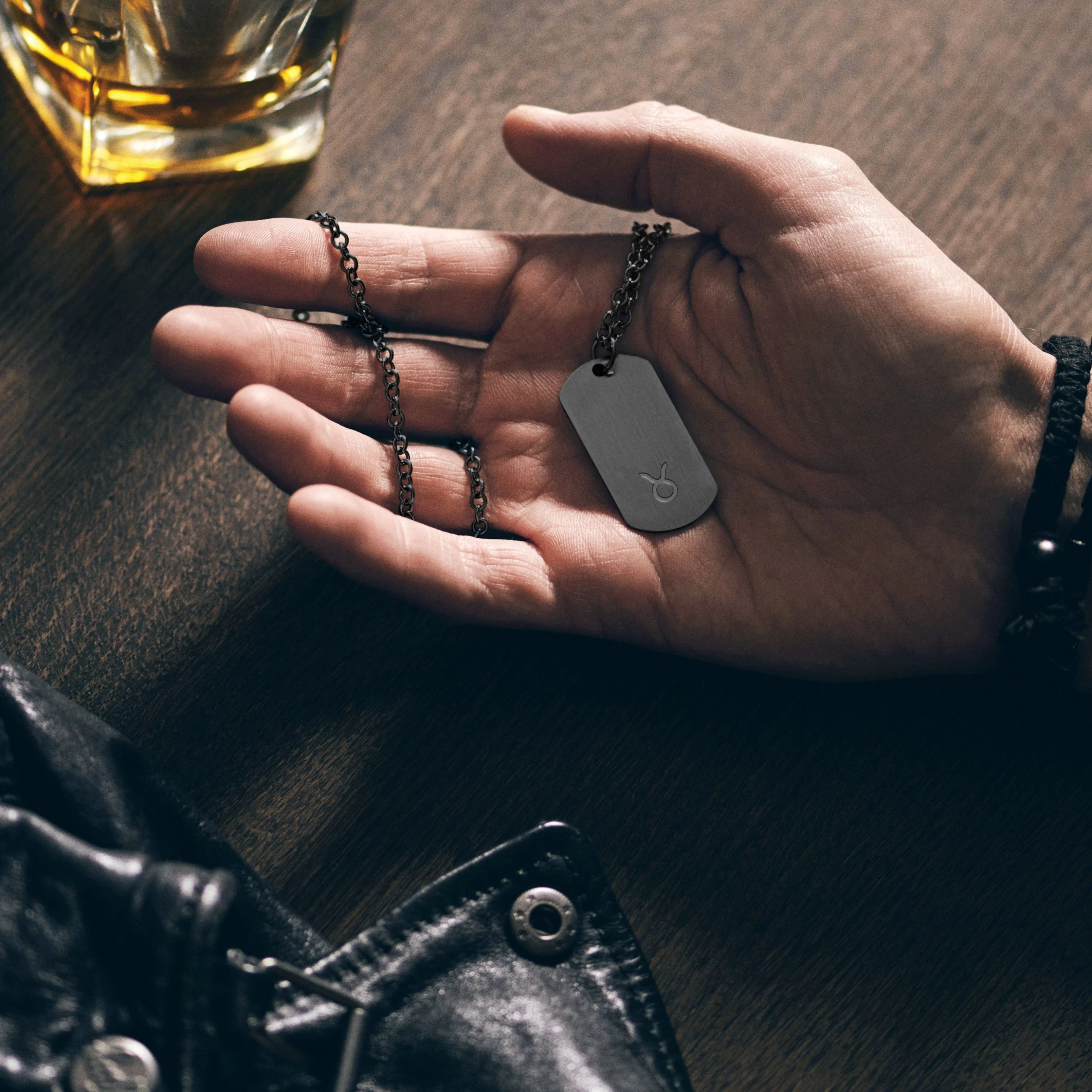 Zodiac | Gunmetal Stainless Steel Taurus Star Sign Dog Tag Cable Chain Necklace