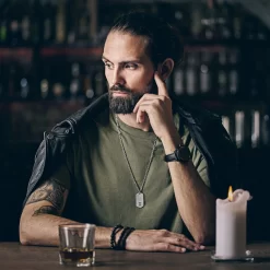 Zodiac | Silver-Tone Stainless Steel Gemini Star Sign Dog Tag Cable Chain Necklace