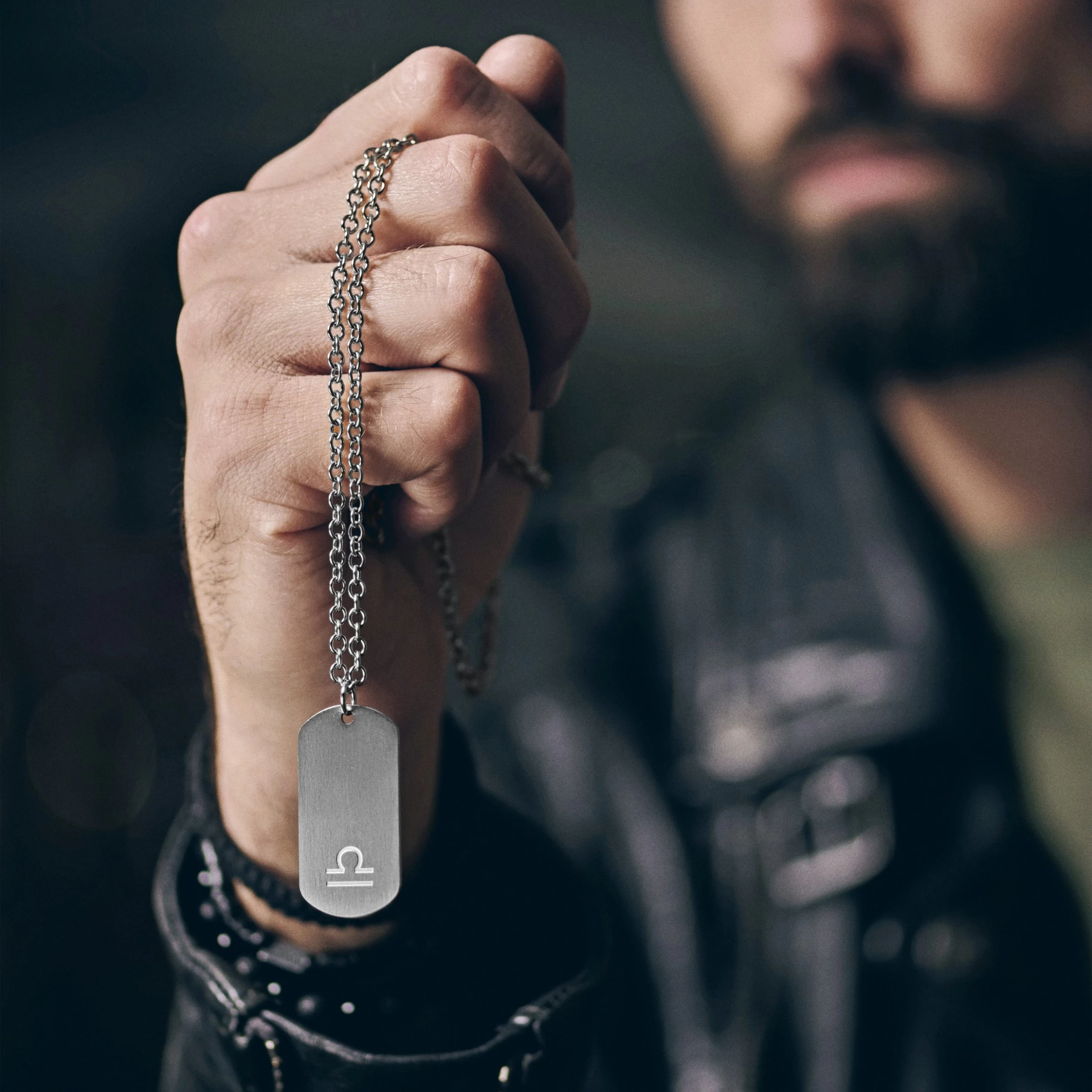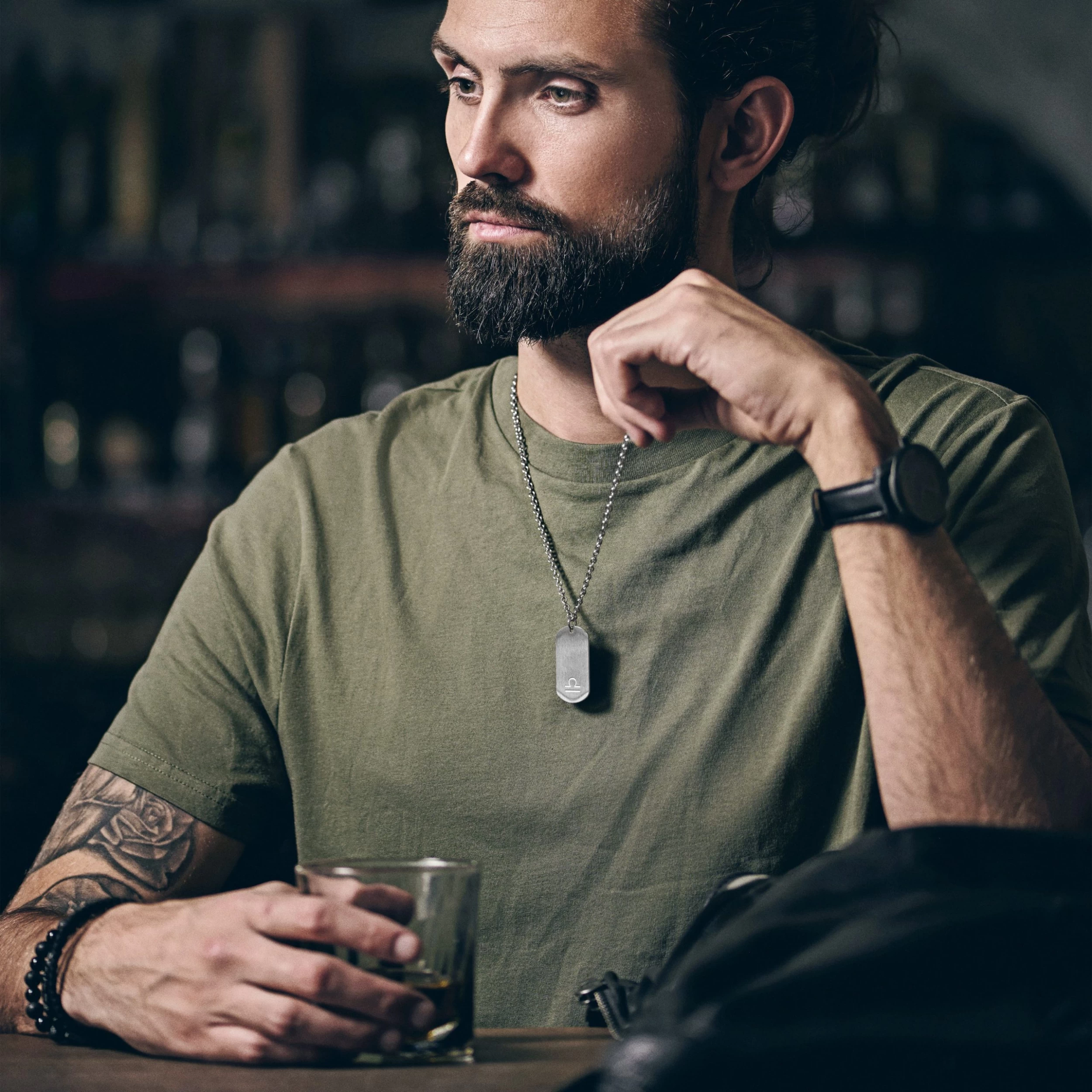Zodiac | Silver-Tone Stainless Steel Libra Star Sign Dog Tag Cable Chain Necklace