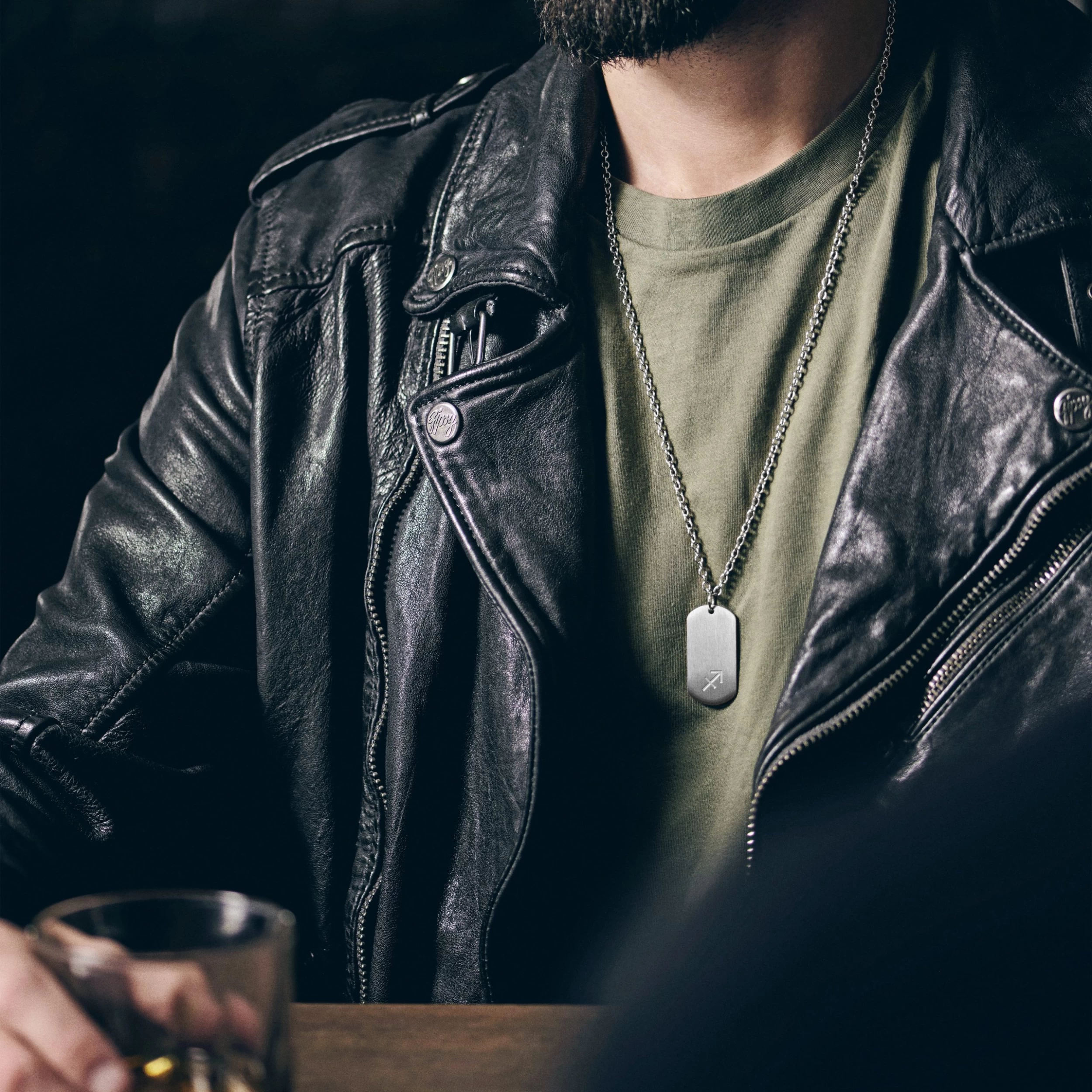 Zodiac | Silver-Tone Stainless Steel Sagittarius Star Sign Dog Tag Cable Chain Necklace