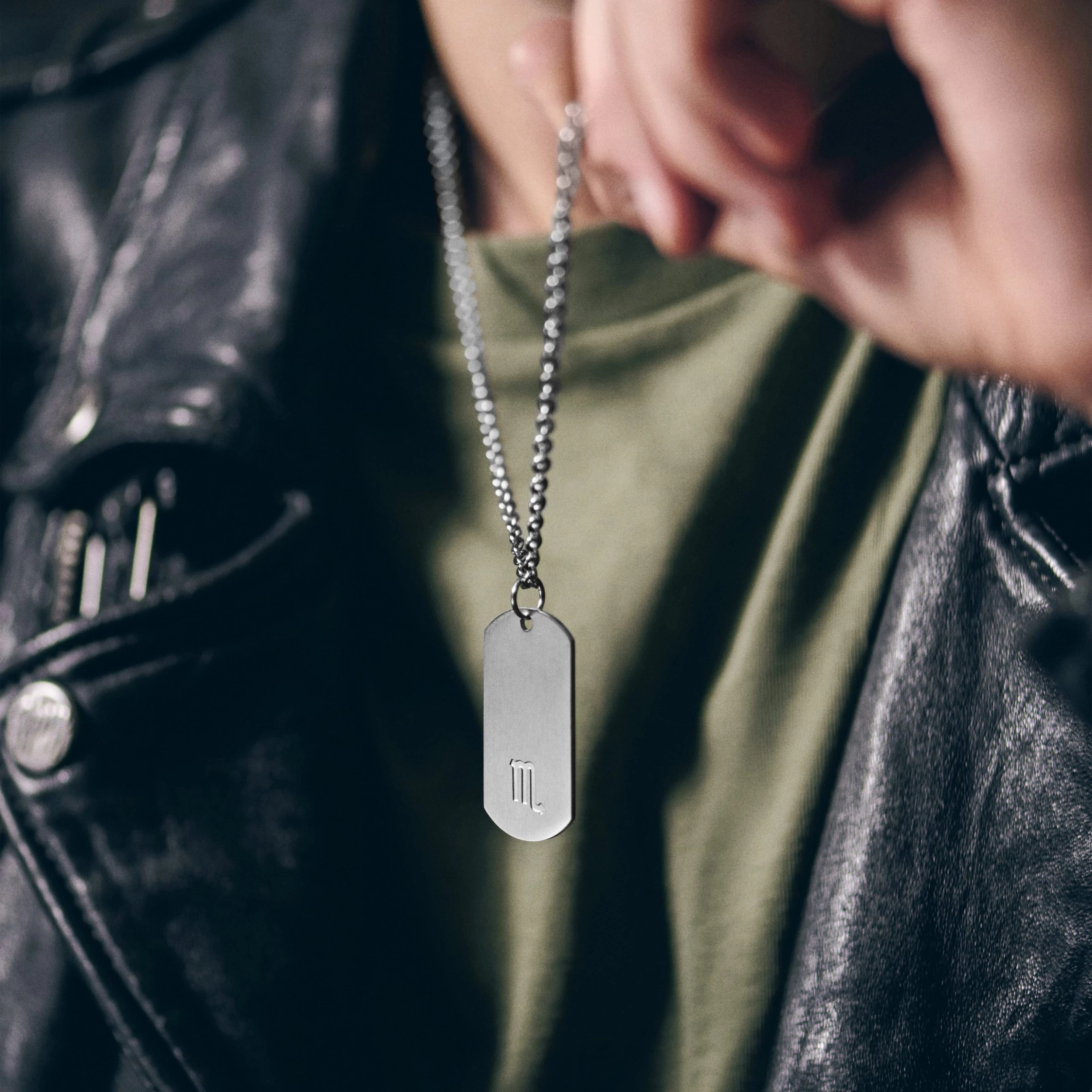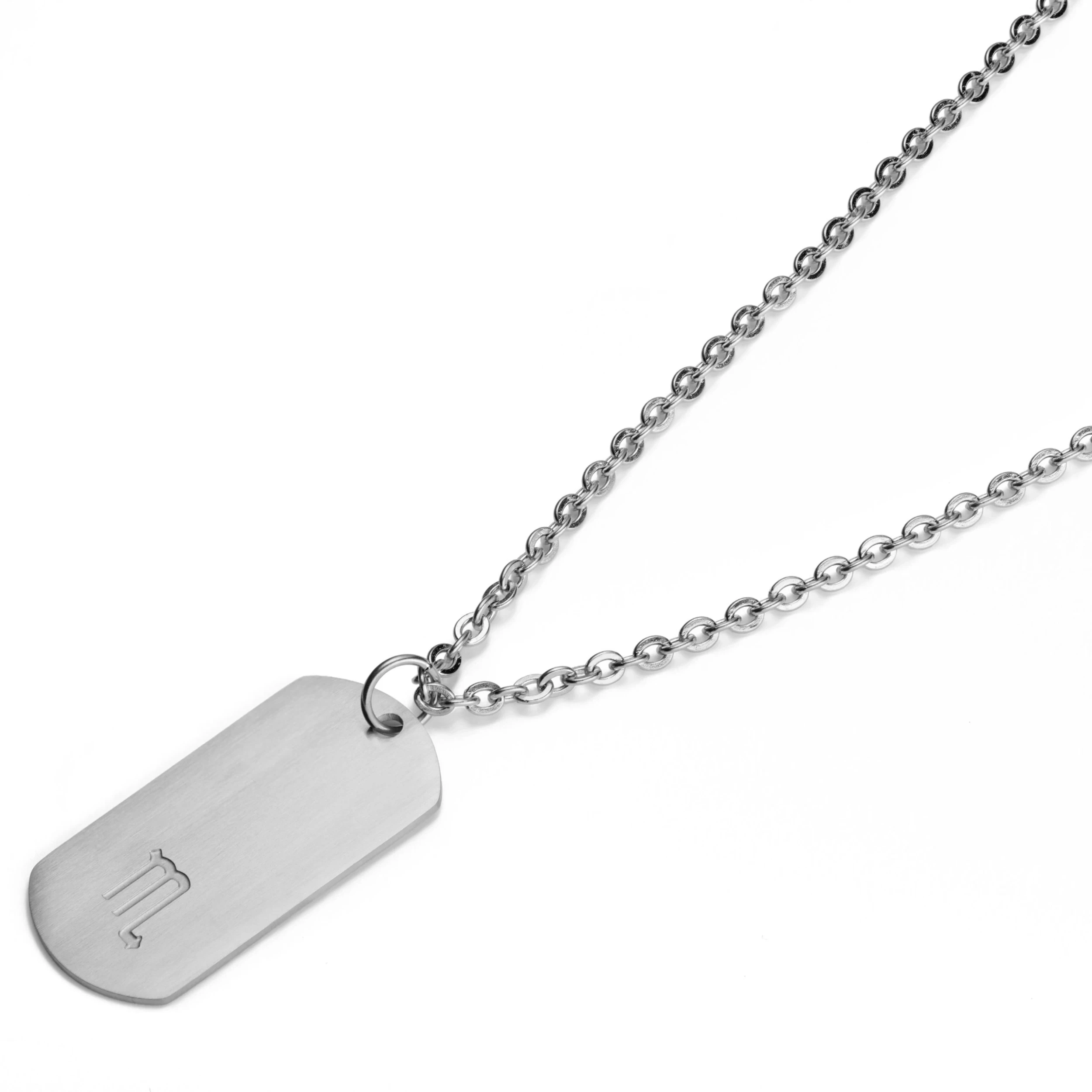 Zodiac | Silver-Tone Stainless Steel Scorpio Star Sign Dog Tag Cable Chain Necklace
